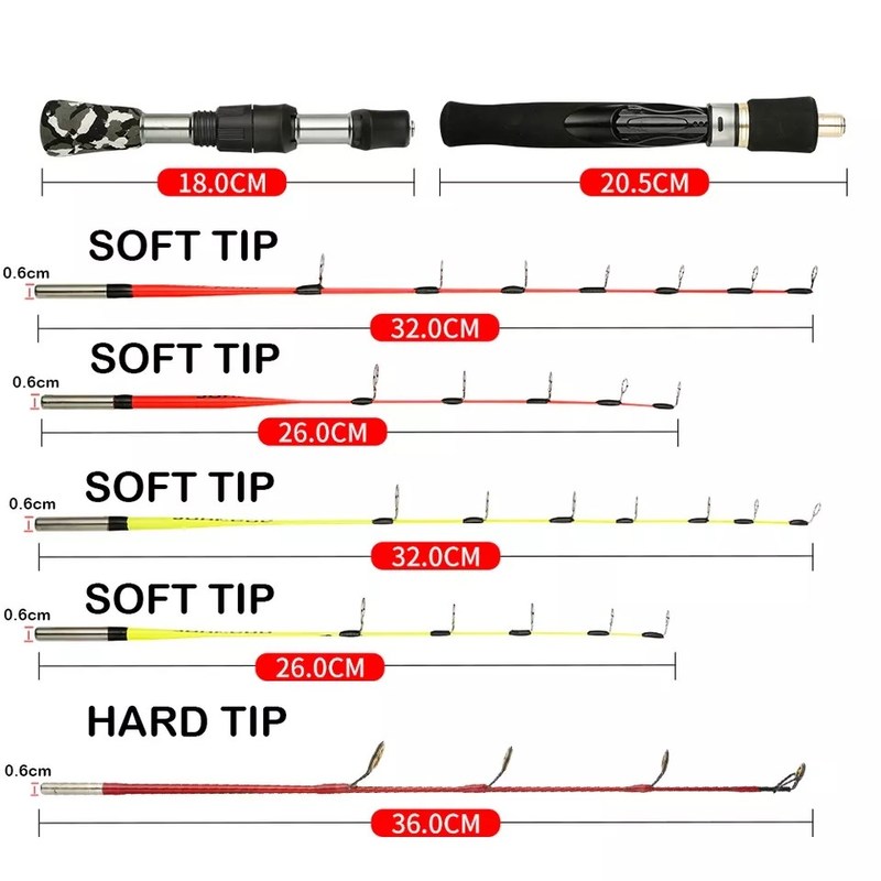 Longitud: Las cañas de pesca en hielo son generalmente más cortas que las cañas de pesca normales, con una longitud que varía de 18 a 48 pulgadas.La longitud más corta permite un manejo más fácil en el espacio reducido de un refugio de pesca en hielo.